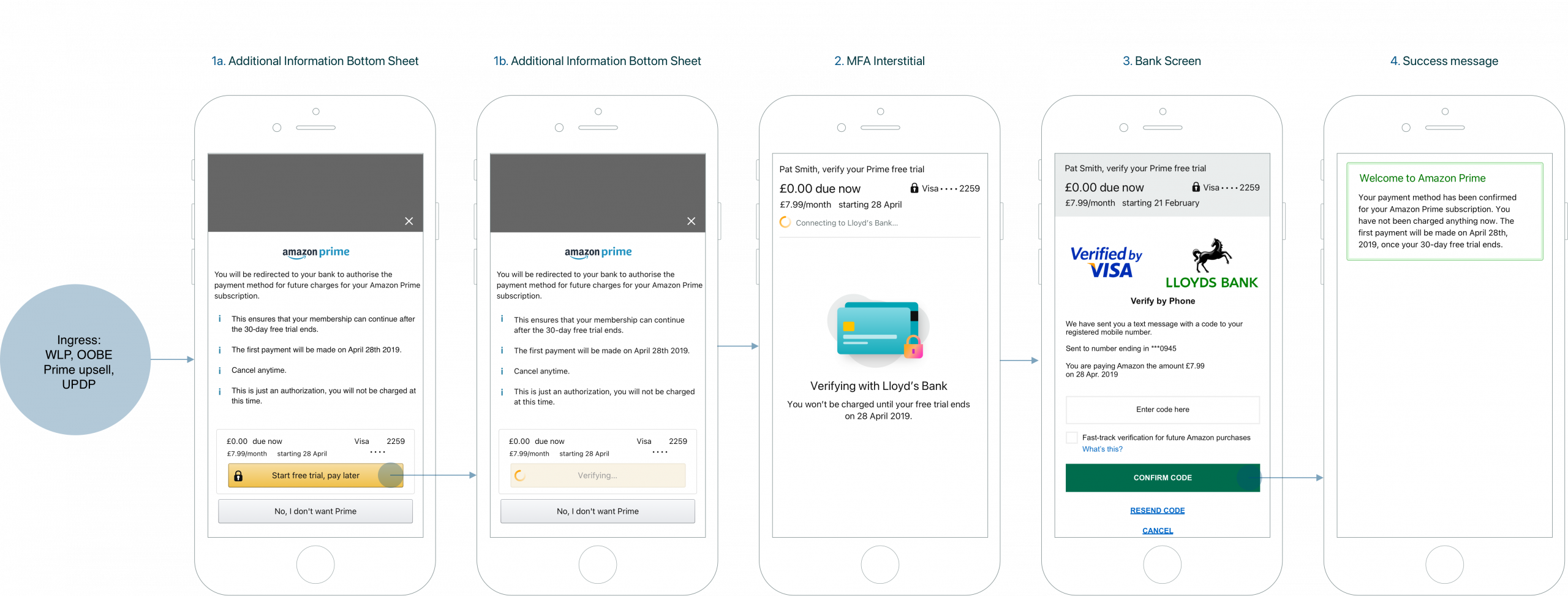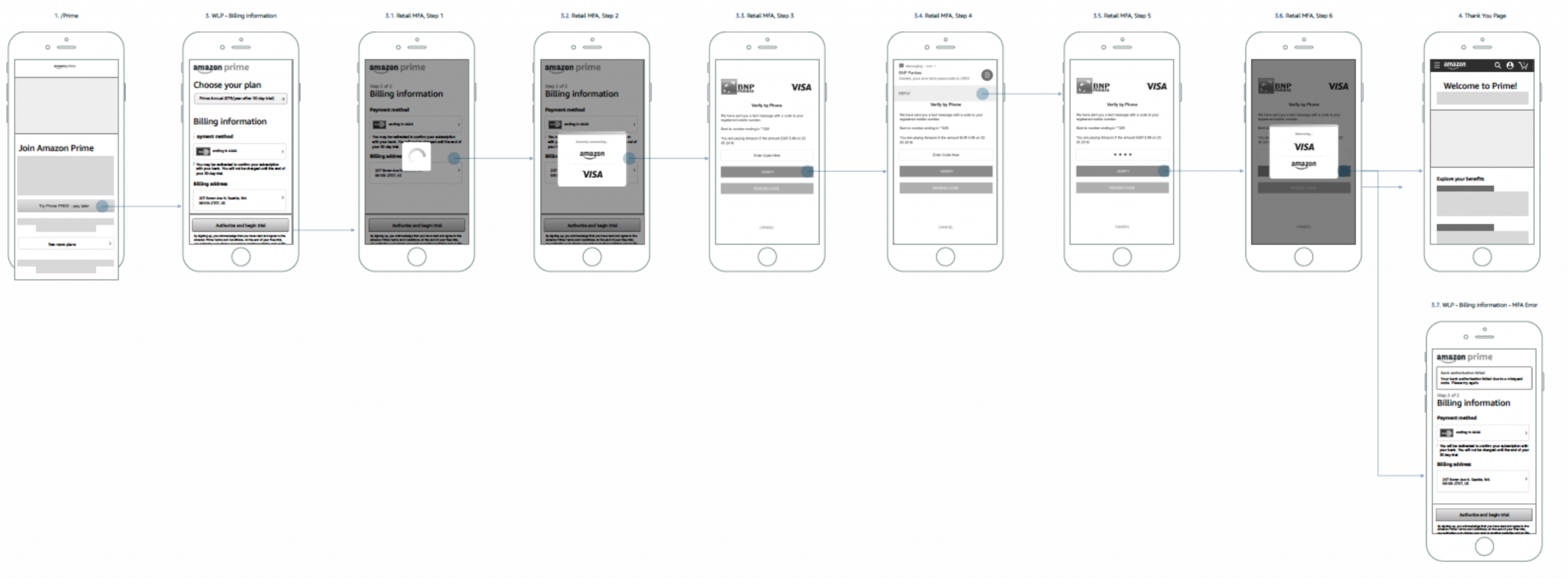 My role grew beyond Prime into leading MFA patterns for subscriptions company-wide. This was the first time Amazon had pulled so many businesses into a single design framework. I even completed designs for teams that did not have the resources to meet the dates, such as Amazon Fresh.