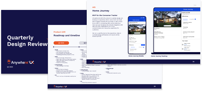 Screenshots from Anywhere UX Quarterly Design Review